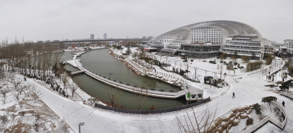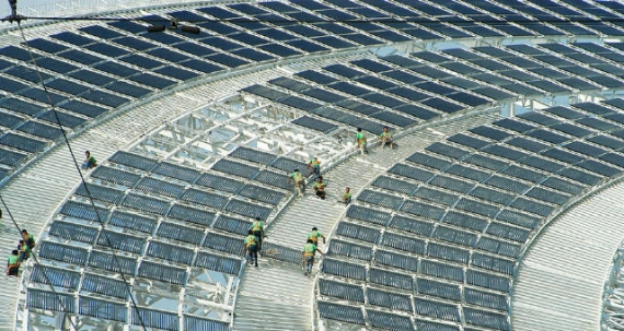 Na cobertura do edifício estão instalados mais de 5000 metros quadrados de painéis solares. No que diz respeito ao aço, foi utilizado apenas 1% do aço utilizado no “Ninho do Pássaro”, o estádio dos Jogos Olímpicos de Pequim. Os isolamentos colocados nos tectos e paredes permitem economizar 30% mais de energia relativamente ao exigido pelo governo chinês.