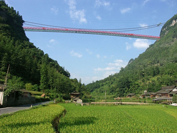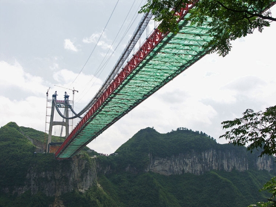 A ponte suspensa mais alta do mundolocaliza-se na China e denomina-se de ponte Aizhai. Este é mais um recorde mundial na engenharia civil e na construção conseguido pela China. A ponte Aizhai une dois túneis numa distância de 1.176 metros, a uma altura de 355 metros e localiza-se na província de Hunan. Com duas faixas de rodagem em cada sentido, a sua construção iniciou-se em Outubro de 2007 e prolongou-se até ao fim de 2011, ou seja, teve uma duração de cerca de 4 anos e 2 meses. A inauguração da ponte Aizhai foi no passado dia 31 de Março, apesar de esta já ter estado aberta ao tráfego pedonal durante o Spring Festival de 2012.