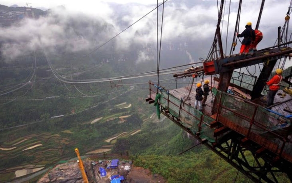 De seguida apresentamos uma série de imagens desta ponte espantosa, a ponte suspensa mais alta do mundo, que inclui imagens da sua construção, assim como pormenores das ancoragens. Se é engenheiro civil, ou um curioso da engenharia civil, não deixe de observar esta série de imagens da Ponte Aizhai.
