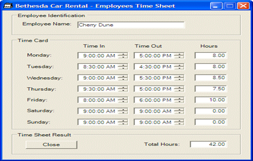 Imagem de um programa para cálculo de Time Sheet de uma locadora de automóveis: